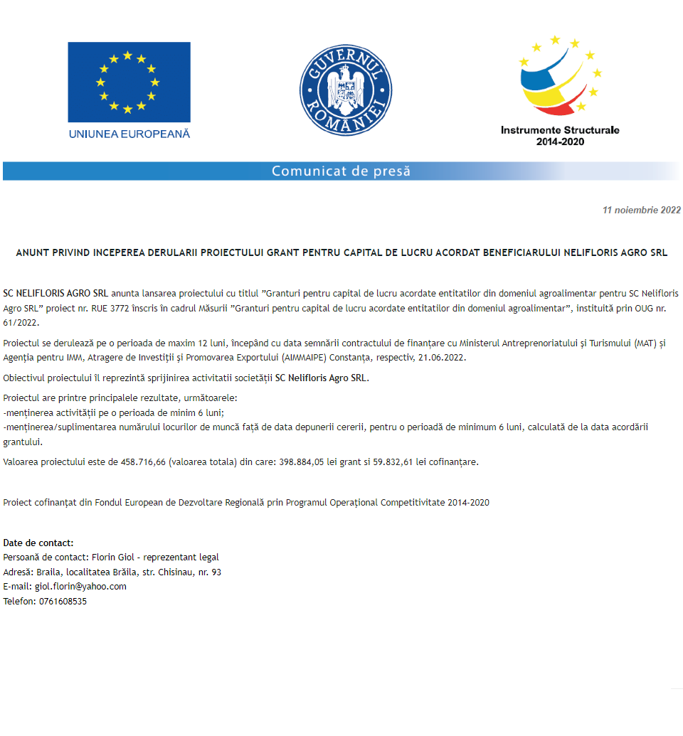 Anunț privind începerea derulării proiectului Grant capital de lucru AGRI-FOOD acordat beneficiarului S.C. INPROCONSA S.R.L. Anunț privind începerea derulării proiectului Grant capital de lucru AGRI-FOOD acordat beneficiarului S.C. CON-DAR S.R.L. Anunț privind începerea derulării proiectului Grant capital de lucru AGRI-FOOD acordat beneficiarului MAXIMAL PRINT S.R.L. Anunț privind începerea derulării proiectului Grant capital de lucru AGRI-FOOD acordat beneficiarului PIPOSZ IMPEX S.R.L. Anunț privind începerea derulării proiectului Grant capital de lucru AGRI-FOOD acordat beneficiarului NOVAPANE S.R.L. Anunț privind începerea derulării proiectului Grant capital de lucru AGRI-FOOD acordat beneficiarului SC NELIFLORIS AGRO SRL Anunț privind începerea derulării proiectului Grant capital de lucru AGRI-FOOD acordat beneficiarului STANDARD FRUCT S.R.L. Anunț privind începerea derulării proiectului Grant capital de lucru AGRI-FOOD acordat beneficiarului AGROFINANCE GROUP S.R.L. Anunț privind începerea derulării proiectului Grant capital de lucru AGRI-FOOD acordat beneficiarului AVIBROILER S.R.L. Pagina 162 din 215«Prima pagină‹Anterioară153154155156157158159160161162163164165166167168169170171‹Următoare »Ultima pagină Publică Anunţ