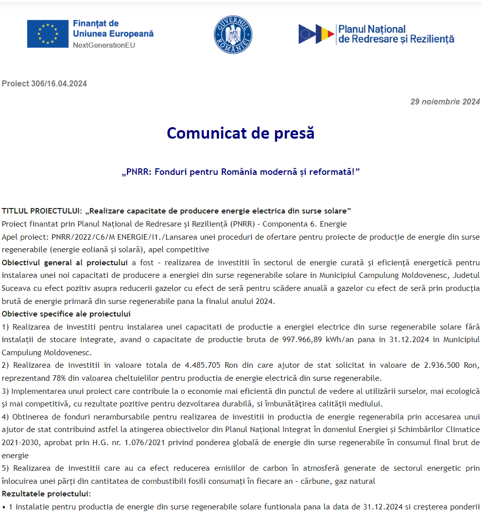 Comunicat de presă privind începerea derulării proiectului „Atelier de creație digitală” Comunicat de presă privind finalizarea derulării proiectului „Realizare capacitate de producere energie electrica din surse solare” Comunicat de presă privind începerea derulării proiectului „PROIECT DE INVESTITII PENTRU DIGITALIZAREA SOCIETATII” Anunț lansare licitație Achiziție de SERVICII ORGANIZARE EVENIMENTE Comunicat de presă privind începerea derulării proiectului „Cresterea competitivitatii CABINET MEDICAL DR. PASCALAU ANDREEA SRL” Comunicat de presă privind începerea derulării proiectului “DIGITALIZAREA COMPANIEI PRB CLARUM SRL” Comunicat de presă privind începerea derulării proiectului „Digitalizarea societatii RUBIC LIFE SRL” Comunicat de presă privind începerea derulării proiectului „,Digitalizarea companiei Darleot Group SRL prin achiziția de hardware și software performant”, cod MySMIS 319935 Comunicat de presă privind începerea derulării proiectului „Învățând pe alții, învățăm și noi!” Pagina 85 din 215«Prima pagină‹Anterioară76777879808182838485868788899091929394‹Următoare »Ultima pagină Publică Anunţ