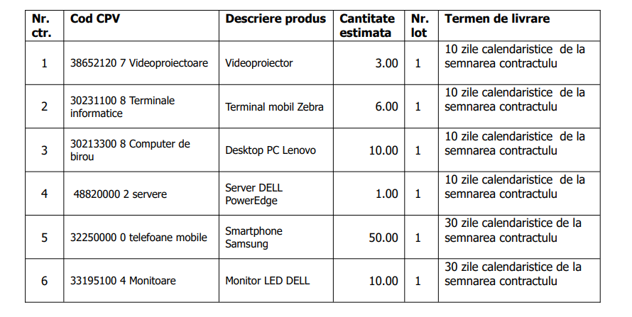 2.1. Obiectul achizitiei: “Achiziție echipamente hardware” inclusiv livrarea