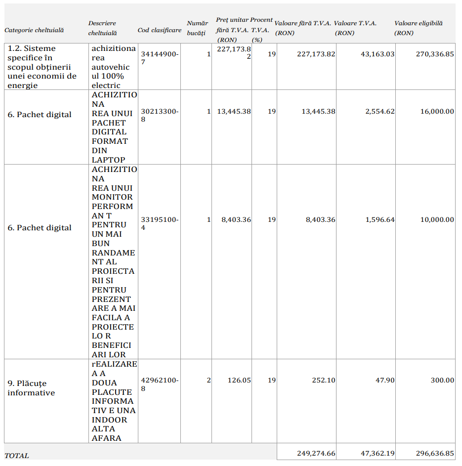 • Valoare finanţarii nerambursabilă în sumă maximă de 199,992.56 lei